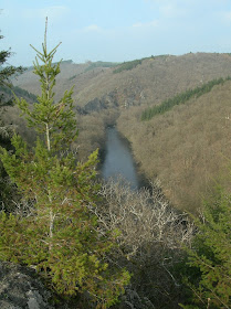 Could not hold out any longer and went hiking in the Ardennes for the first time this year. Below you see the Ourthe river flowing through a narrow valley near the village of Nadrin, central Ardennes. Not visible on the left is a cragged rock formation, part of a 1,400m long crest of ancient rock, called Le Hérou (the heron), which is what got this place its name but of which I failed to make a decent pic. Throughout the aeons, "Le Hérou" forced the Ourthe river to make a wide detour to the southeast and up northwest again before it could go further, and indeed the river makes a 180° U-turn further downstream.